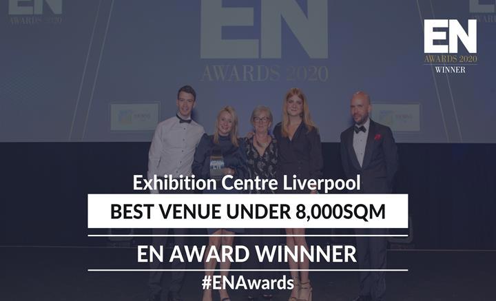 Exhibition Centre Liverpool has scooped a coveted industry award for the second year running. We were named Best Venue Under 8,000 sq m at the EN Awards, hosted by magazine Exhibition News.