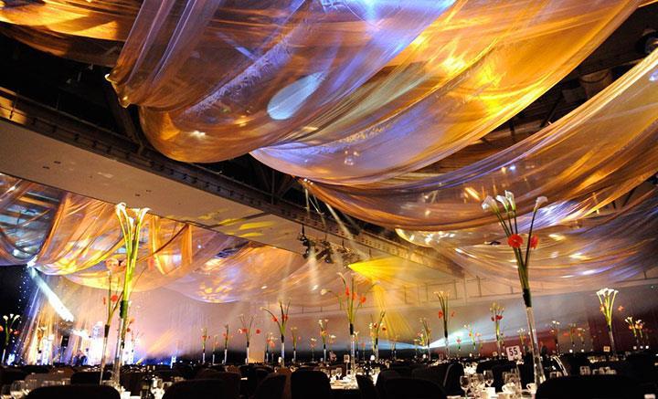 Our support to you doesn’t stop at your conference or exhibition. We have a range of draping and lighting solutions to ensure that your dinner or social activity is given the same due care and attention as your daytime event and activities.
